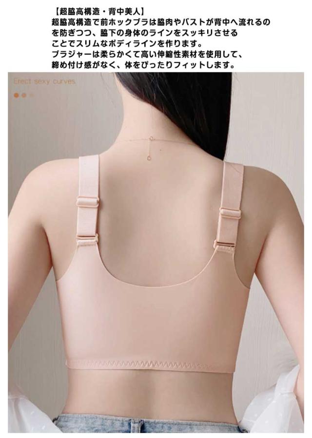 フロントホック ブラジャー ノンワイヤー ブラジャー 大きいサイズ 締め付けず フロントホック 脇高 前開き 垂れ防止 ナイトブラ 柔らかい 通気性 胸を小さく見せるブラ