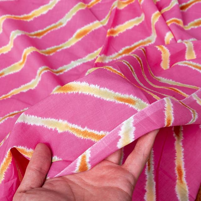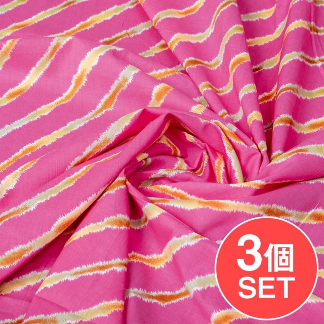 【3個セット】〔1m単位切り売り〕南インドの斜めストライプコットン布 レジメンタル ピンク系〔幅約108cm〕 / 量り売り布 アジア布 手芸 アジアン ファブリック エスニック