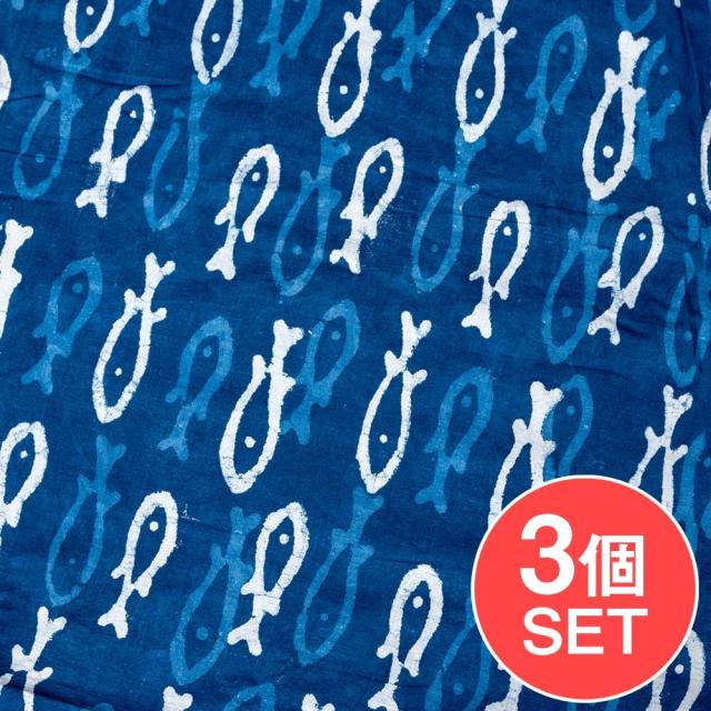 【3個セット】〔1m単位切り売り〕インドの伝統息づく 昔ながらの木版インディゴ藍染布 お魚 ネイビー系〔幅約110cm〕です。セットでお得になっています♪