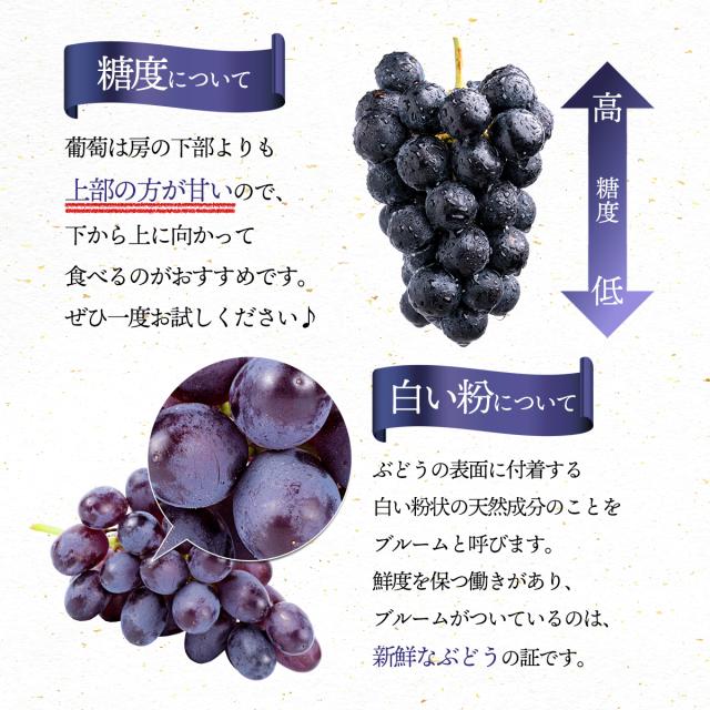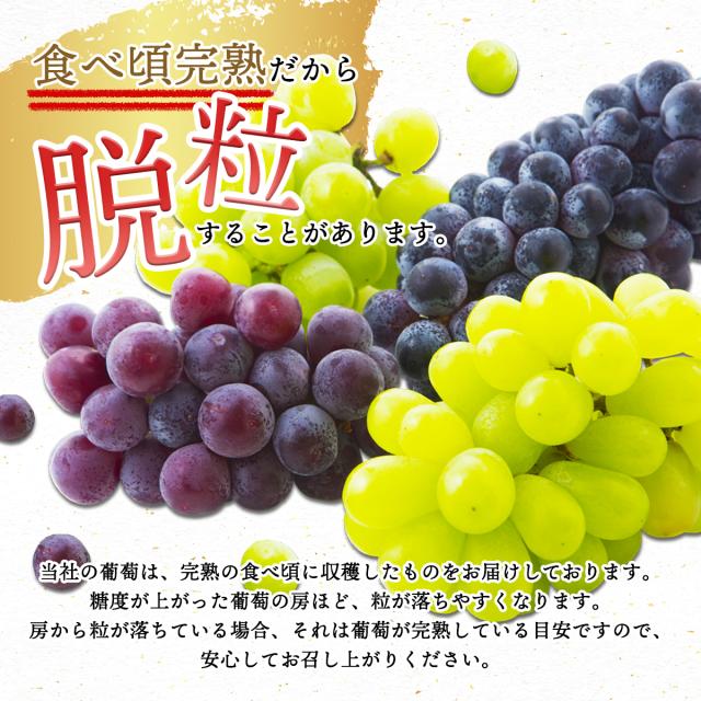 糖度が高くなるにつれ房から実が外れやすくなりますがご了承ください。生ものですので、お受け取り後はすぐに状態を確認し、適切に保存の上、できるだけ早めにお召し上がりください。