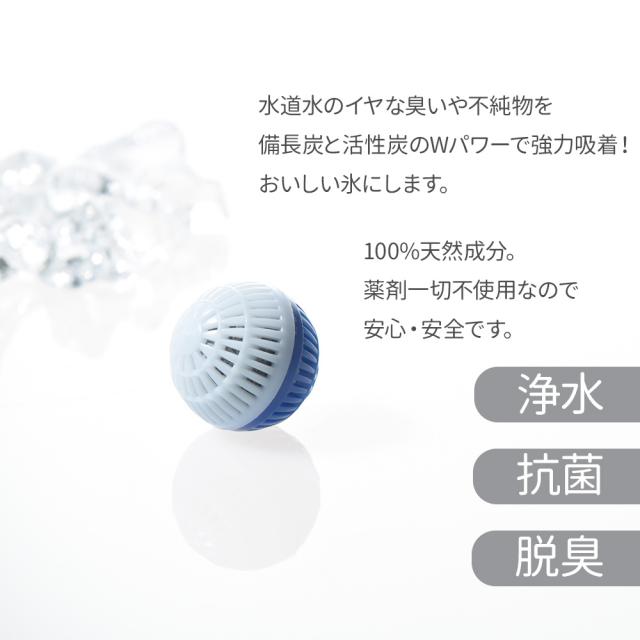 備長炭と活性炭のWパワーでおいしい氷に!水道水のカルキや不純物を吸着し、イヤな臭いも抑えて水を浄化します。