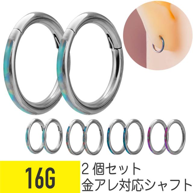 2個セット オパール カラー ライン ワンタッチ セグメント リング 16G サージカルステンレス ヘリックス 軟骨ピアス ボディピアス