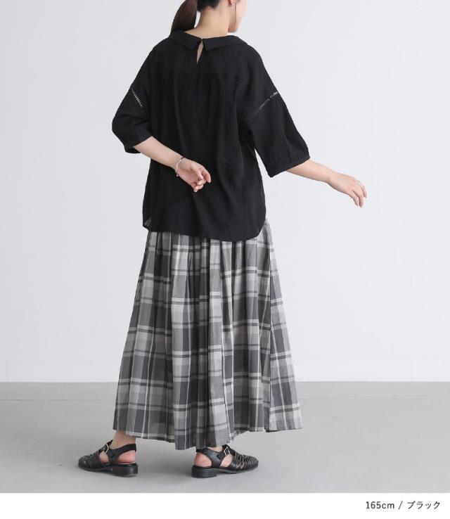 ■デザイン プチ襟がポイントになった、シアー感のある風合い楊柳生地ブラウス。すっきりとしたスクエアの襟ぐりに、控えめな襟を付けてアクセントにしました。七分袖で着やすいのも嬉しいポイントです。 ■コーディネート ボトムスインしてすっきりと大人っぽくしたり、シンプルなスカートとスニーカーに合わせてカジュアルに見せても◎シンプルなので柄物アイテムとも好相性です。 ■素材 コットン100%のほんのり透け感がある楊柳生地。清涼感とナチュラル感のある、さらりとした肌触りの素材です。 肌刺激につきまして こちらの商品は、 お肌に刺激を感じる場合がございます。 ご了承の上、ご購入いただきますようお願いいたします。 |