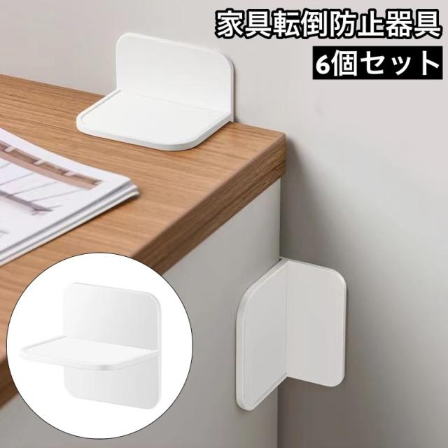 家具転倒防止器具 6個セット 固定器具 防災グッズ 地震対策 穴あけ不要 接着テープ 取付簡単 TV テレビ台 本棚 食器棚 キ