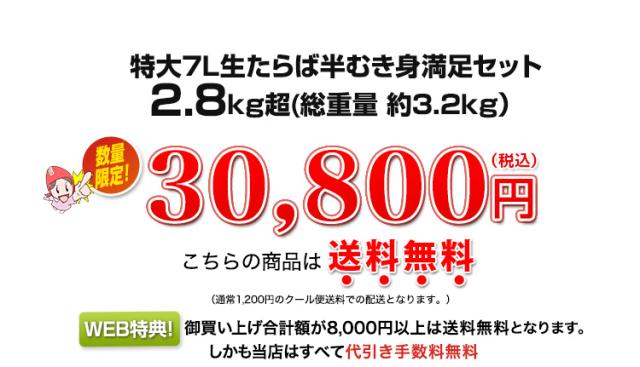●商品名/特大7L生たらば半むき身満足セット2.8kg超(総重量約3.2kg)