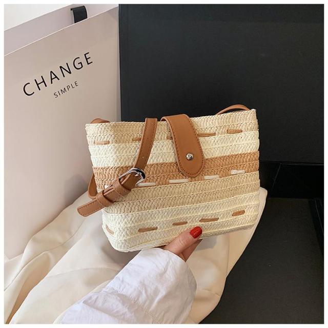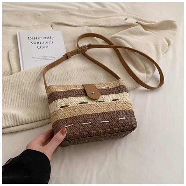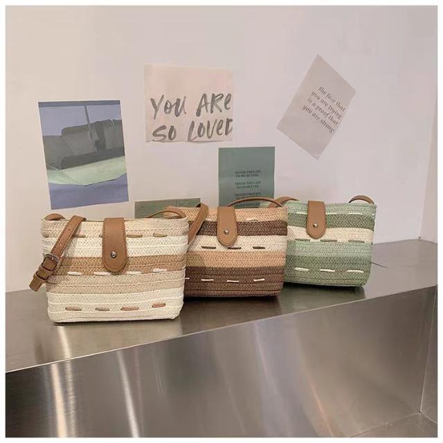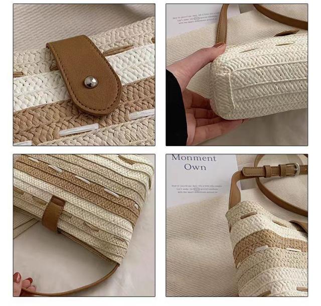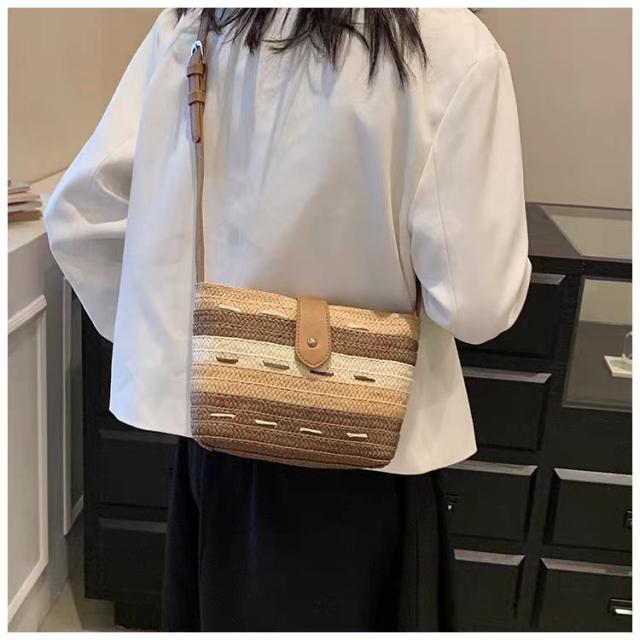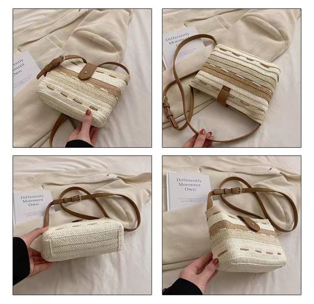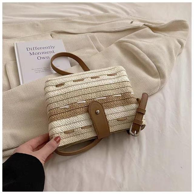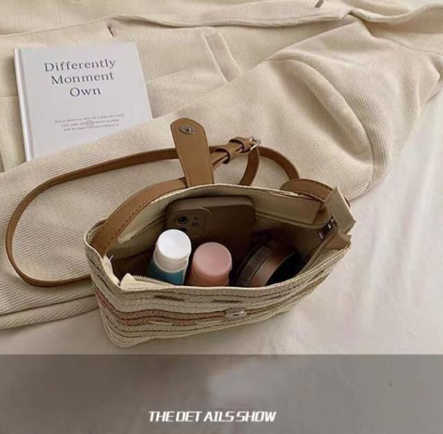 このかごバッグは、軽さが自慢。ストロー素材なので、持ち運びも楽々です。小さめサイズなので、必要最小限の荷物をスマートに収納できます。リゾート地や街中でのお出かけにぴったりのアイテムです。