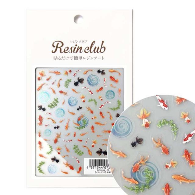 レジンクラブ レジンシール 金魚2 【両面】 (1枚) 夏 魚 出目金 和金 赤 かわいい 上から 水面 波紋 ビオトープ 水盤 金魚鉢 RC-KNG-102 送料無料(普通郵便)
