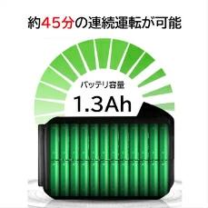 ◆安全面・パワーを考慮したリチウムイオンバッテリー。約45分の連続運転が可能。