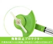 角度はヘッド部分の角度ボタンを押すと、3段階に調節できます。 地面や垣根など、用途に合わせて変えられるので作業がはかどります。 また保護カバー付きで小石やゴミの飛び散りを防いでくれます。