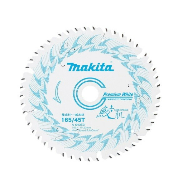 ☆ マキタ 鮫肌 プレミアムホワイトチップソー A-64353 外径165mm 刃数45 マルノコ用 集成材・一般木材用 makita ネコポス可 在庫