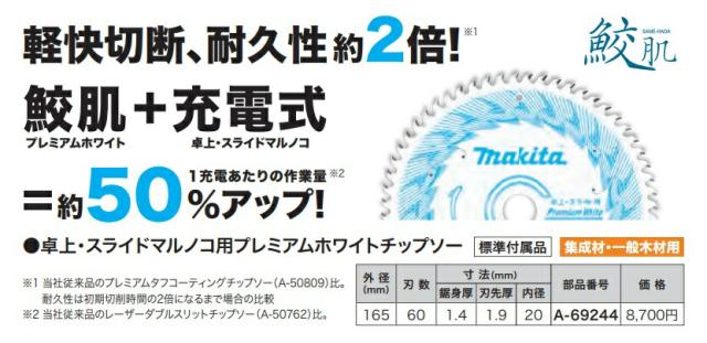 ☆ マキタ 165mm 鮫肌 プレミアムホワイトチップソー A-69244 外径165mm 集成材・一般木材用 makita ネコポス可 在庫