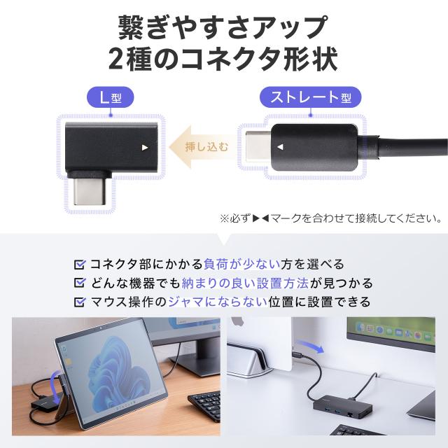 ⇒ご購入の前にご確認下さいUSB Type-Cケーブル1本で、4K/60Hzを最大2画面のディスプレイ(HDMI×2ポート)に複製/拡張して接続ができるドッキングステーション。USB PD最大100Wに対応。繋ぎやすいL型のアダプタ付き。カートリーダ搭載。有線LAN接続可能。【WEB限定商品】