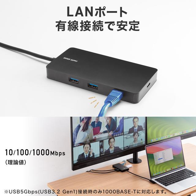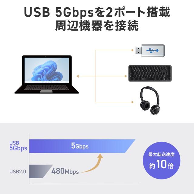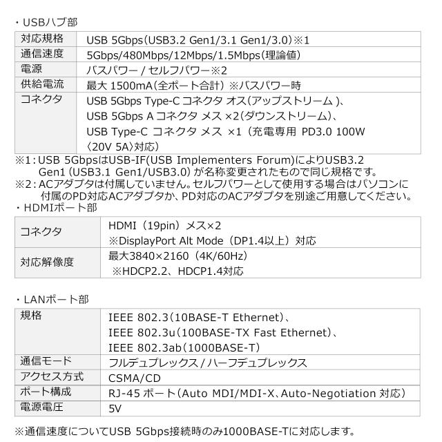 ※通信速度についてUSB5Gbps(USB3.2 Gen1)接続時のみ1000BASE-Tに対応します。