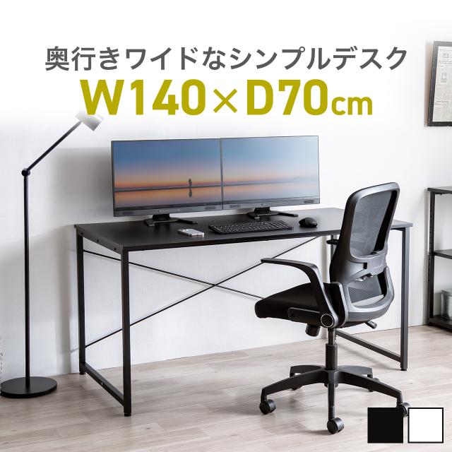 シンプルデスク ワークデスク 平机 幅140cm 奥行70cm モニターアーム対応 ブラック ホワイト[100-DESKF059]