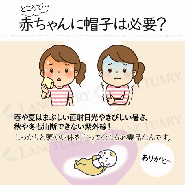 | 主な仕様 | 【カラー】 イエロー、ピンク、ブルー 【サイズ】 頭囲:約46-49cm 参考月齢:生後〜6カ月 (参考月齢は個人差があります) |