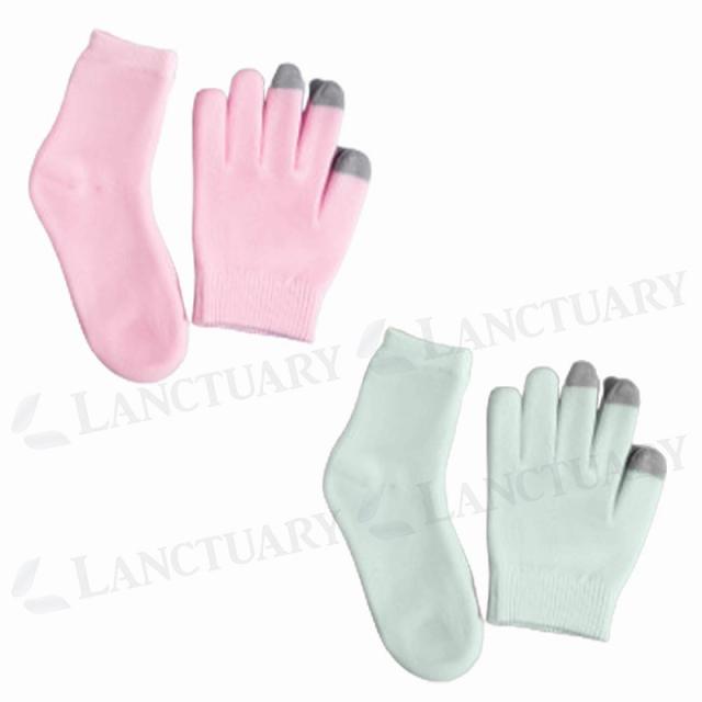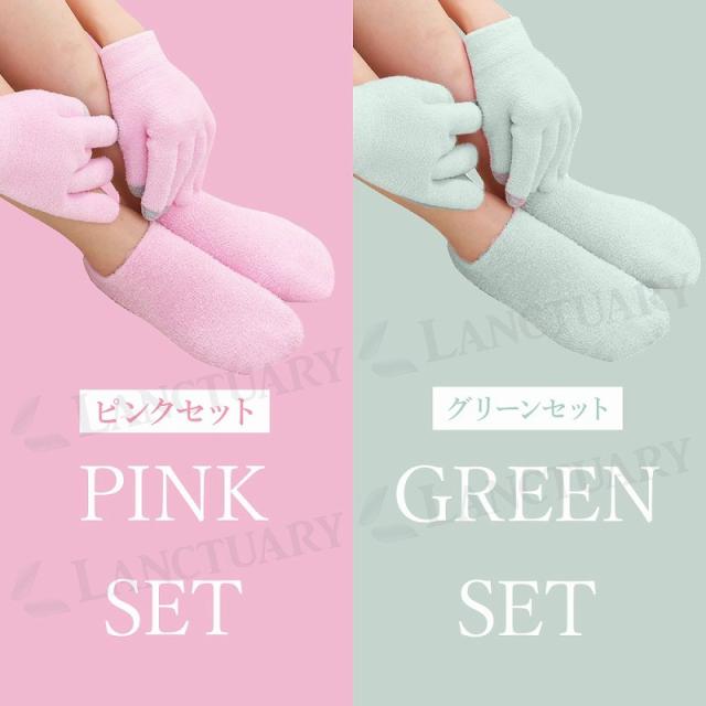ジェルグローブとジェルソックスのセット ピンク グリーン スマホ操作対応 保湿ケア 触り心地 美容手袋 足裏ケア 毛穴開き 簡単スキンケア 手荒れ改善 角質ケア agesugi_sbe