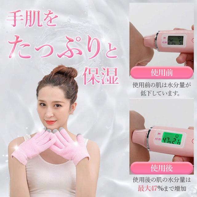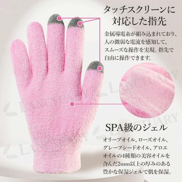 素材:グローブ:タッチスクリーン対応素材、内部に高品質ジェルと保湿成分(オリーブオイル、ローズオイル、グレープシードオイル、アロエオイル)を内蔵