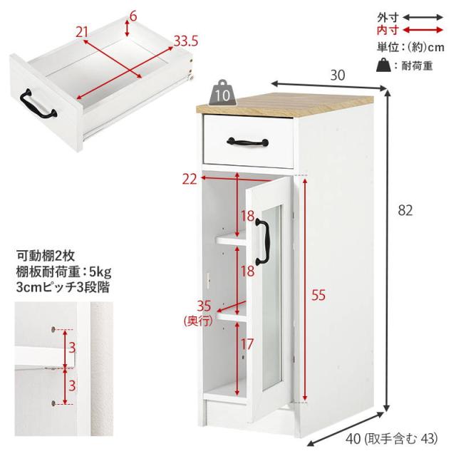 キッチンラック キャビネット ストッカー 収納棚 スリム 隙間収納 幅30cm 扉収納タイプ