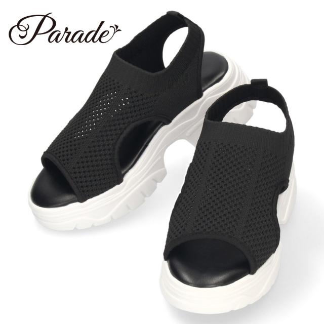 サンダル レディース 厚底 スポーティー 黒 バックストラップ チャンキーヒール ダッド シューズ カジュアル カバードサンダル メッシュ Parade パレード 7406