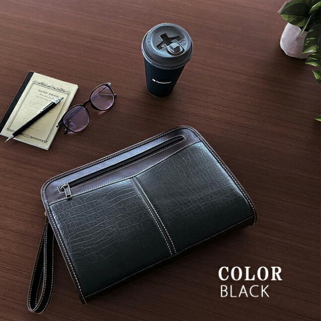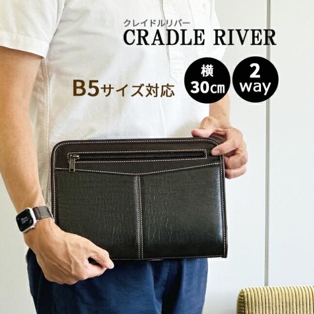 セカンドバッグ メンズ 25951 CRADLE RIVER クレイドルリバー 合皮 セカンドバッグ 30cm B5サイズ ストラップ付き 手持ち クラッチバッグ 旅行 ビジネス 営業 高級感 結婚式 冠婚葬祭 おしゃれ かっこいい 渋い シンプル 男性 メンズ 紳士 父の日 敬老の日 黒 ブラック