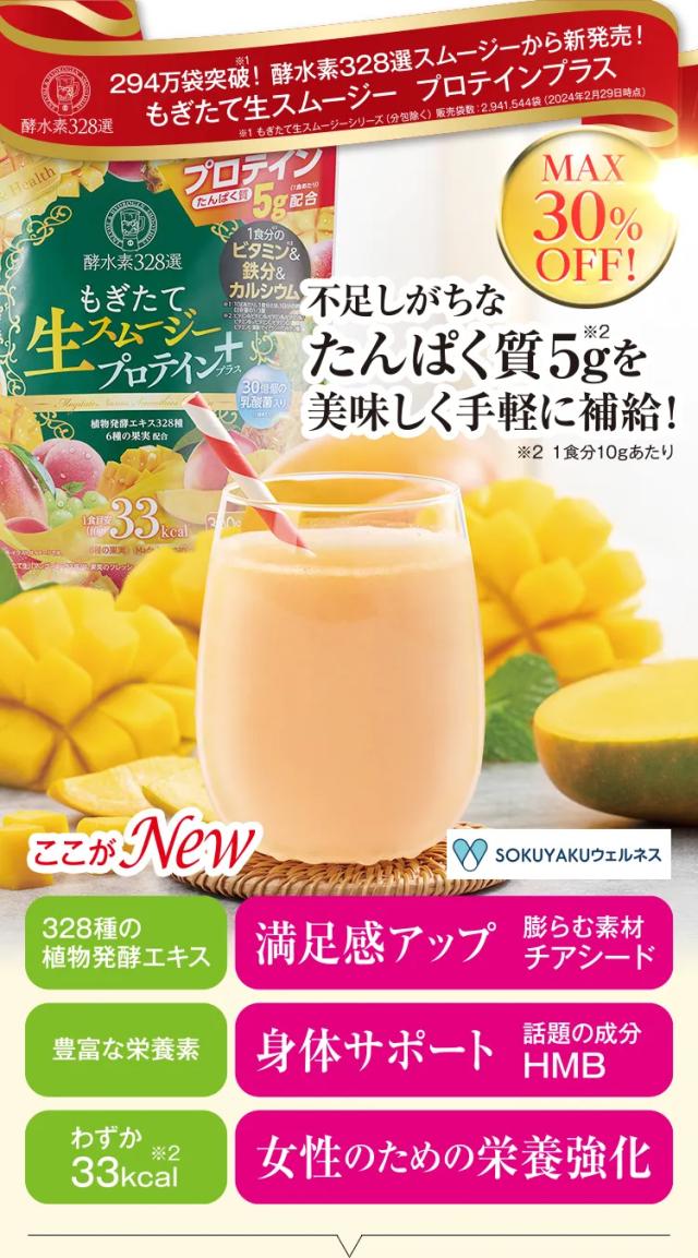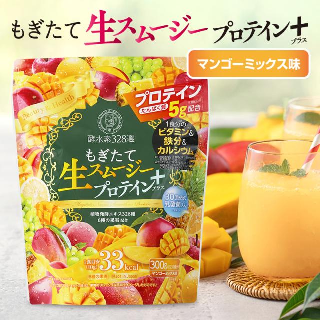 酵水素328選 もぎたて生スムージー プロテイン プラス 300g マンゴー味 置き換えダイエット プロテインダイエット 置き換え タンパク質 スムージー ソイプロテイン ホエイプロテイン 女性 女性用 美容 国産 日本製 ※使用期限:2026年2月28日まで