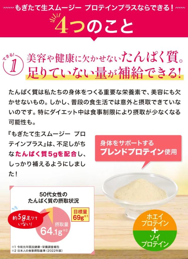 | 商品名 | もぎたて生スムージー プロテインプラス(栄養補助食品) |