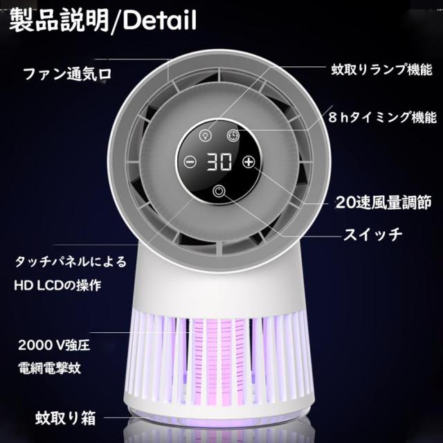 商品説明 2in1羽根なしファン、LED蚊取りランプ、多機能羽根なし扇風機 冷却ファン ポータブル USB 充電/扇風機 空気の循環 花粉・ウイルス対策空気浄化製品説明:1.蚊キラーランプの機能があります2. 20段階の風量調整3. タッチスクリーンコントロール高精細LCDスクリーン4. 蚊に対する2000Vの強力な電気ショック5. 夏の屋外使用に最適なヘルパーで、幼児、幼児、妊婦にも安全です。※メジャー採寸の為、サイズが多少異なる場合がございます。予めご了承ください。