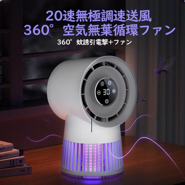 扇風機 蚊取りライト 蚊駆除機能付きファン 2in1 キャンプ 蚊駆除 羽なし usb充電 超静音 20段階大風量 8000mAh アウトドア PSE認証済み