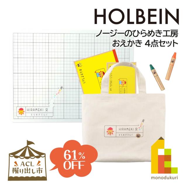 ACL掘り出し市(61%OFF) ホルベイン ノージーのひらめき工房 おえかき 4点セット(おえかきちょう/みつろうくれよん16色/おえかきマット/キッズバッグ)(horidashi2005)絵 描く クレヨン ノート
