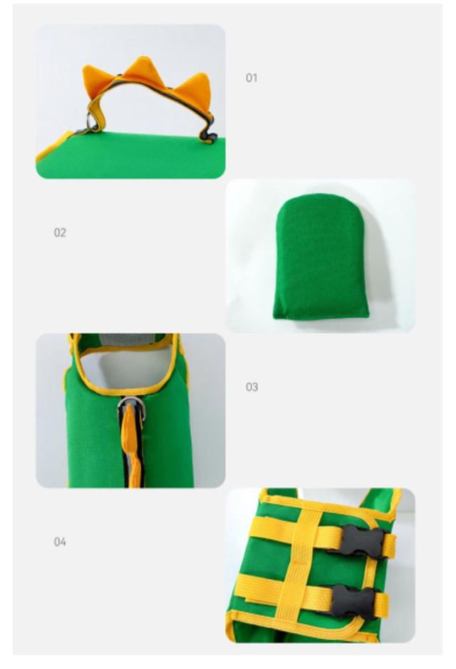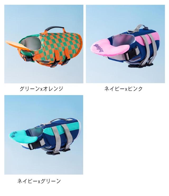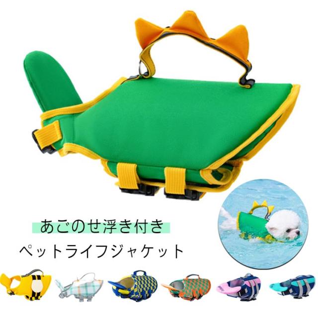 | ペットライフジャケット あごのせ浮き付き 水中でもワンちゃんを捕まえていられるために、背中に持ち手が付いているので、水泳ビギナーの愛犬にも安心! 反射テープ付き、夜も安心♪ | |