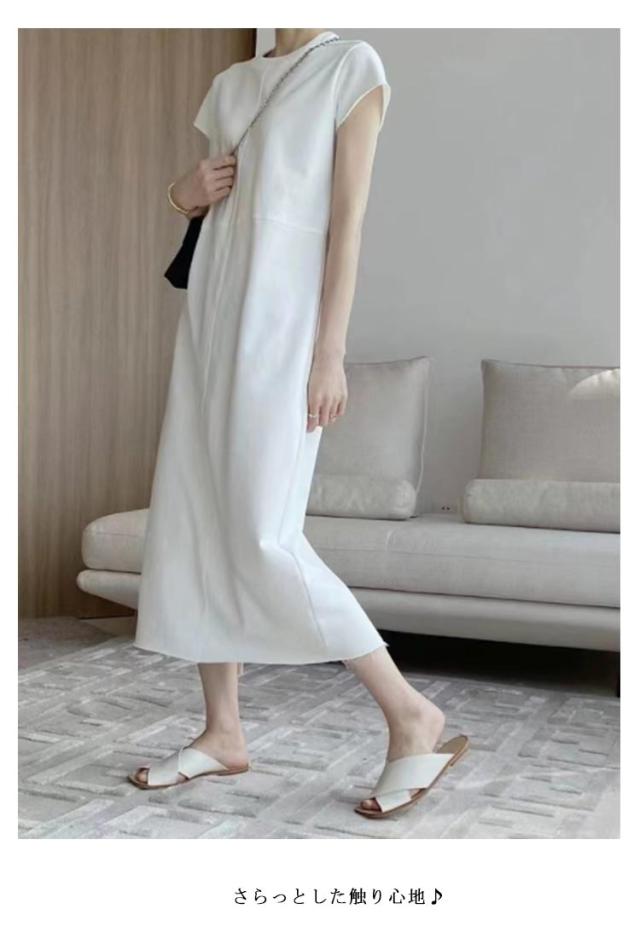 大人ワンピース マキシワンピース カットソー ディース 無地 ワンピース 半袖 春 夏 tシャツワンピース Tシャツワンピ 大人 フレンチスリーブ カジュアル バックスリット ワンピース