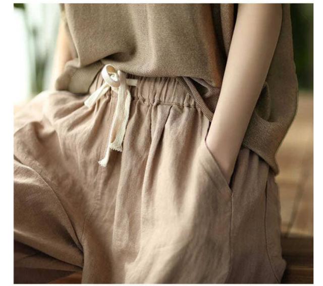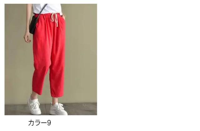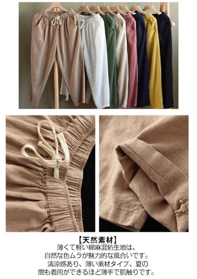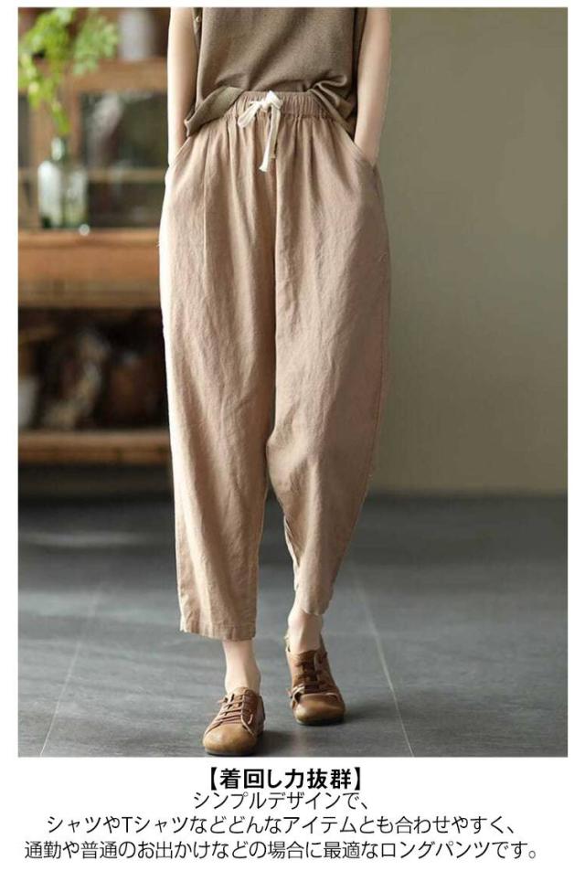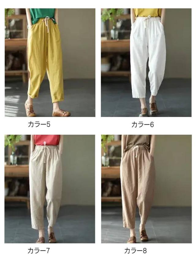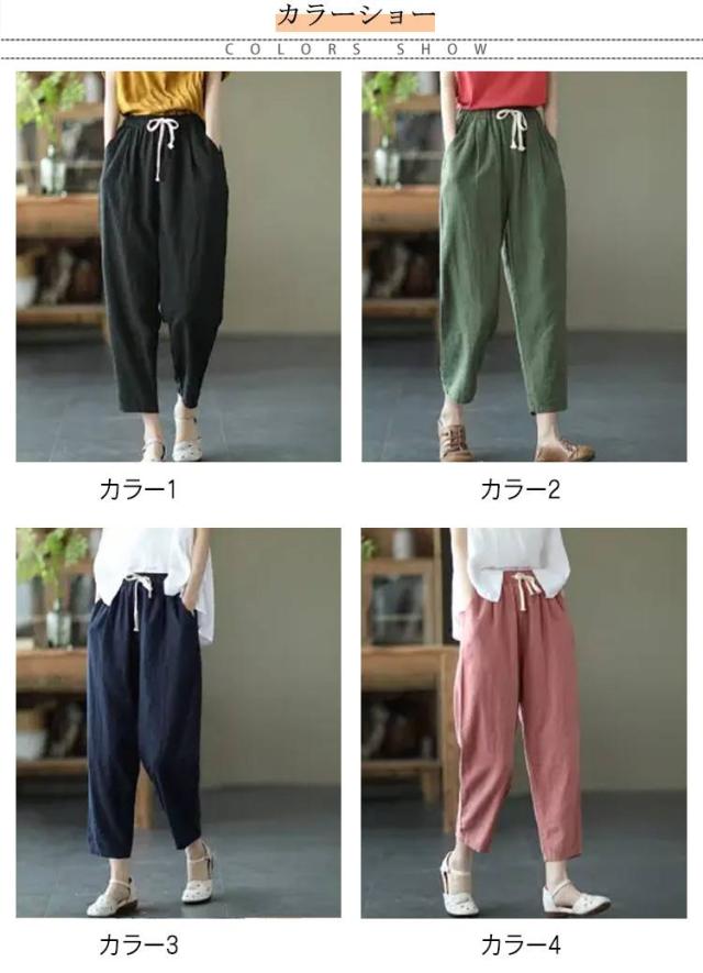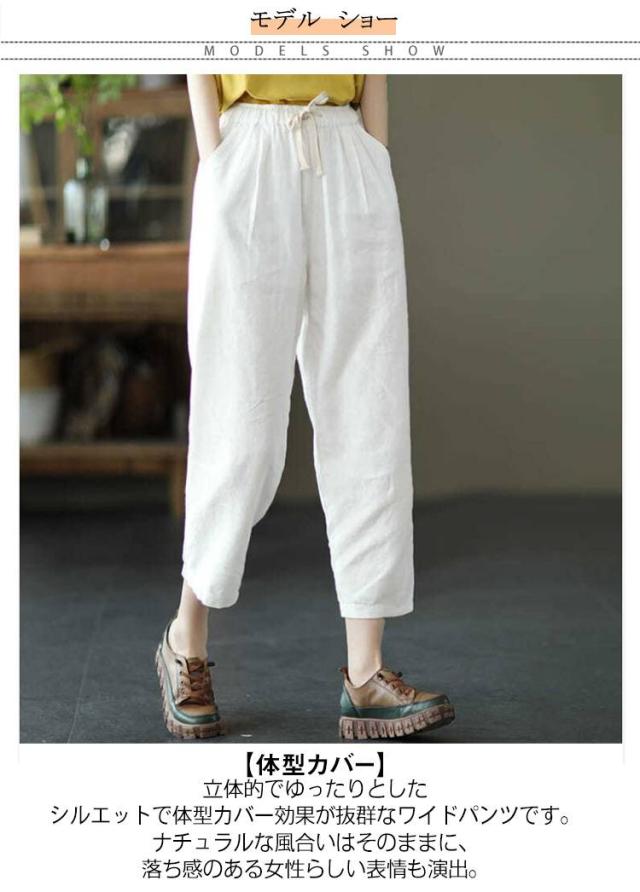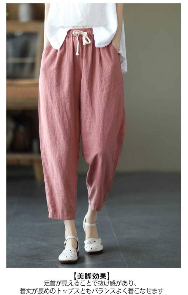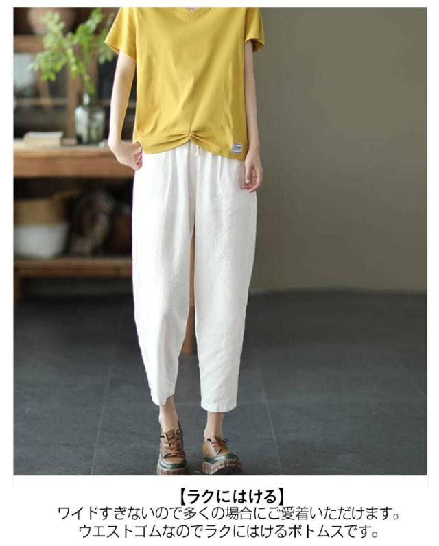 部屋着 夏 サルエルパンツ リネンパンツ レディース イージーパンツ カジュアルパンツ 九分丈 リラックス サルエルパンツ ウェストゴム パンツ 薄手 ズボン クロップドパンツ テーパードパンツ ワンマイルウェア 大人 30代 40代 50代