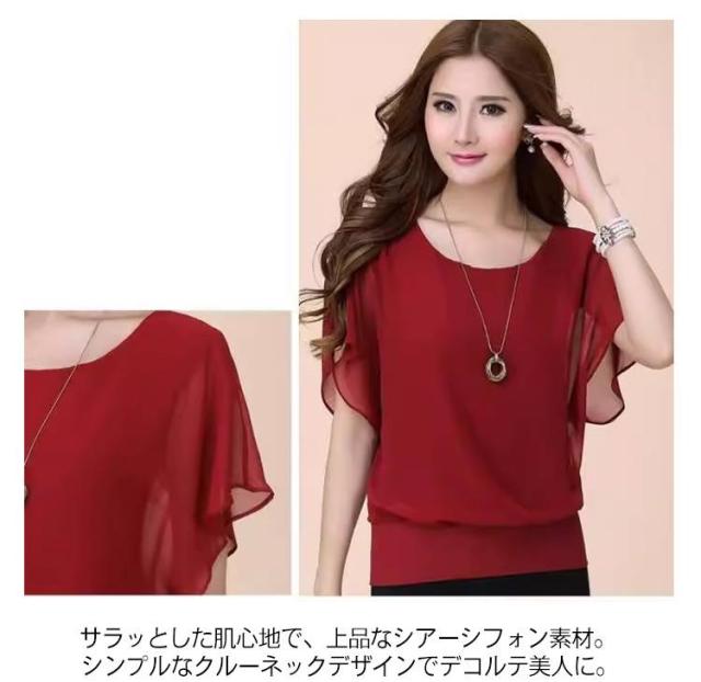 シフォンブラウス シャツ ブラウス フレアスリーブ 楊柳シフォン 半袖ブラウス シアー シフォンブラウス フリル フリルスリーブ 半袖 薄手 涼しい すっきり フレアスリーブ ゆったり 体型カバー 通勤 オフィス 高見え 韓国ファッション