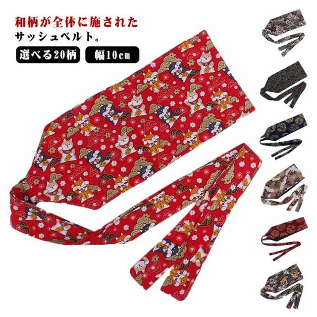 着物帯 サッシュベルト コスプレ 幅10cm 舞台衣装 和柄 レディース 太ベルト ウエストマーク ウエストベルト 布ベルト ダンス衣装 着物 選べる20柄 よさこい 太鼓衣装 和服 選べる20柄 夏祭り