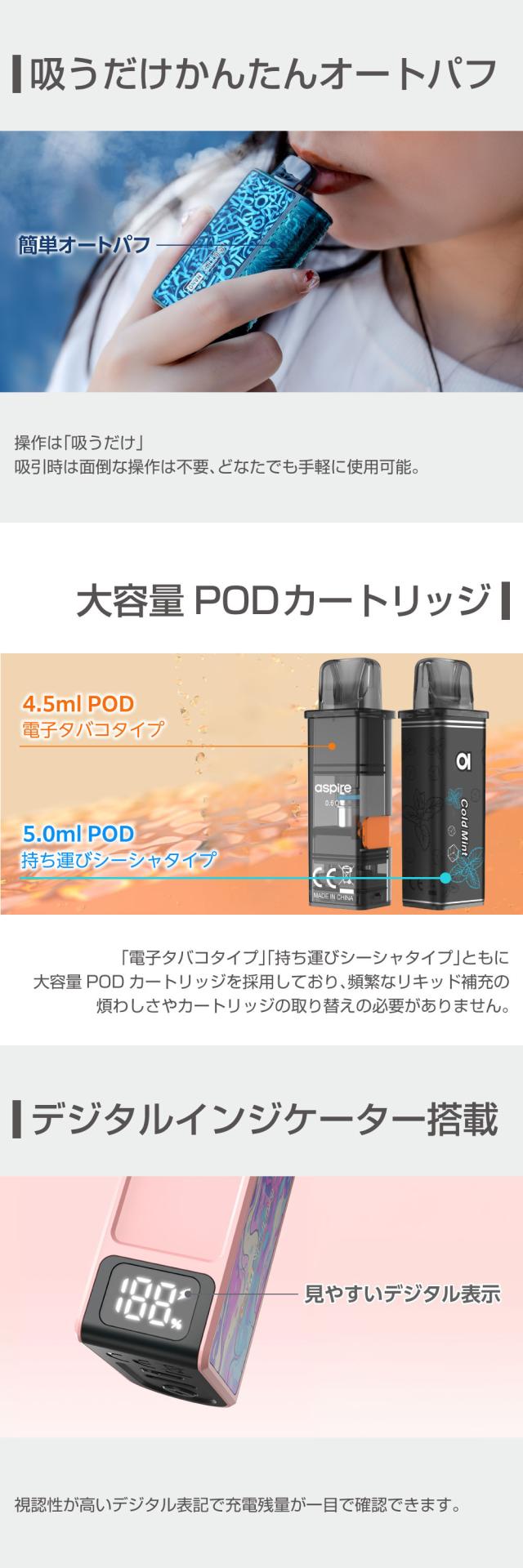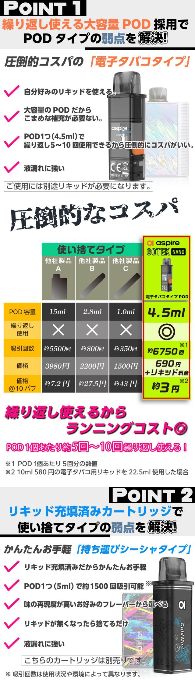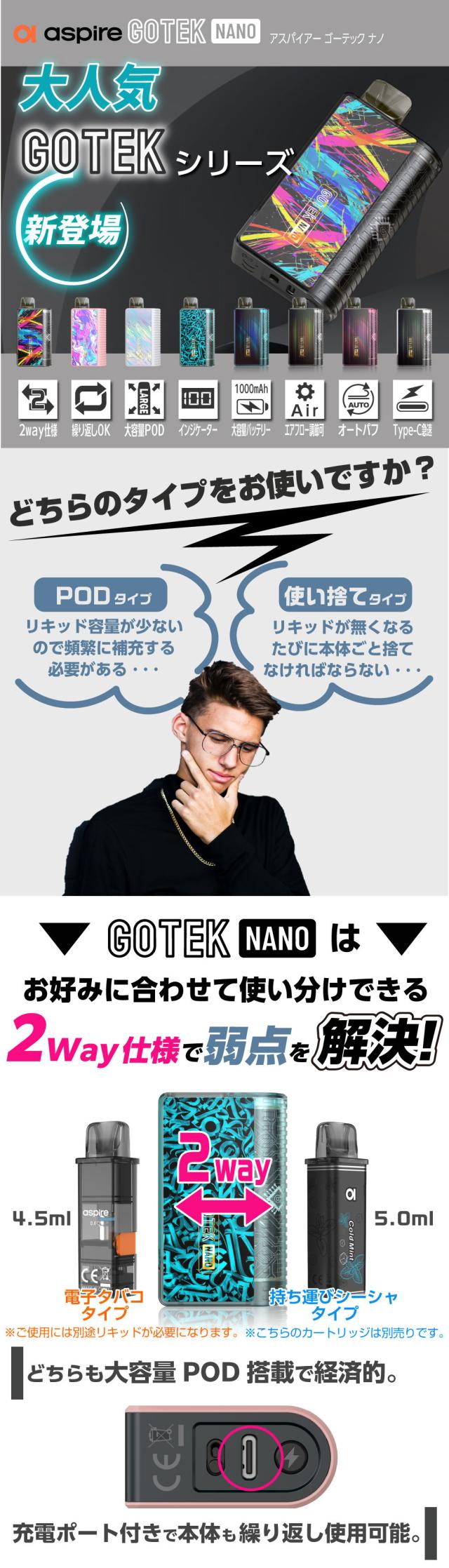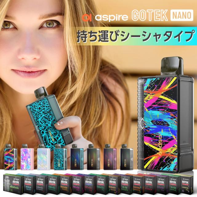Aspire GOTEK Nano 持ち運び シーシャ 電子タバコ ベイプ 使い捨て POD スターターキット 本体 電子タバコ タール ニコチン0 ゴーテック ナノ GOTEK ナノ アスパイア ポッド 水蒸気 おすすめ 電子タバコ VAPE ベイプ リキッド 禁煙 ニコチンゼロ ノンニコチン コンパクト