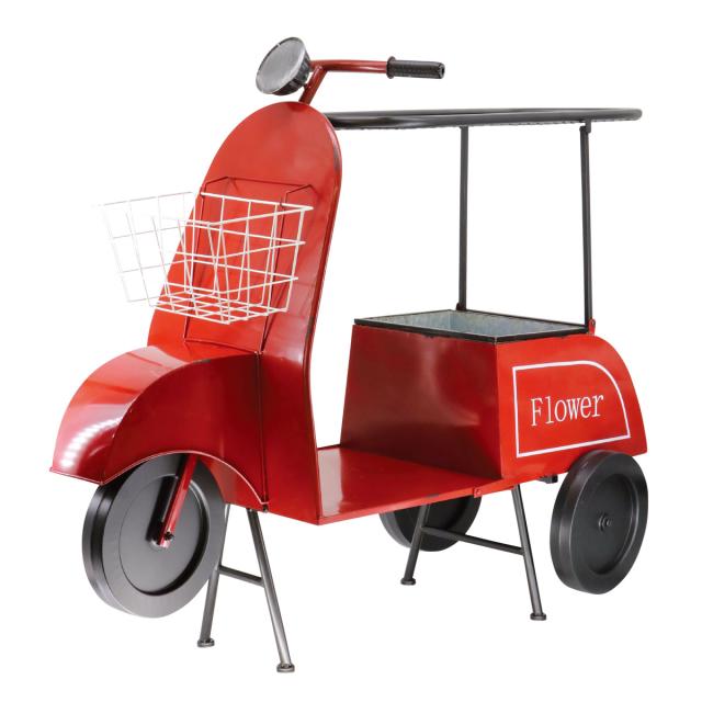 フラワーワゴン スクーター 赤 ( フラワースタンド ワゴン 花台 フラワーラック プランタースタンド 飾り 車 花スタンド ラック ディスプレイ ボックス 置く 植物 観葉植物 花 園芸 アイアン )