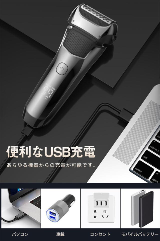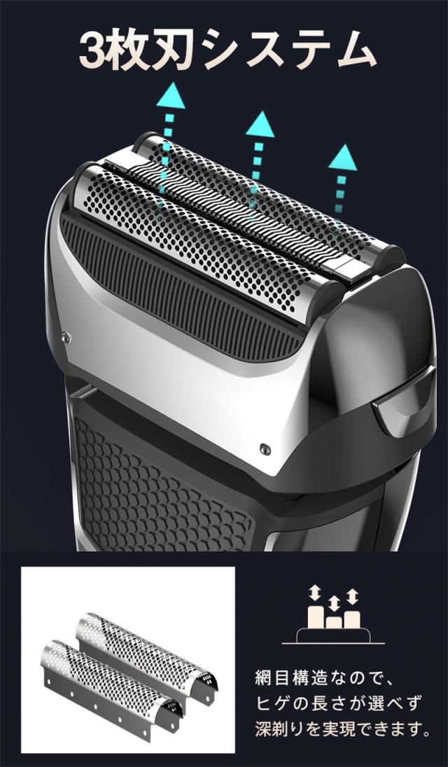 シェーバー メンズシェーバー 電気シェーバー 電動シェーバー 3枚刃 IPX7防水 髭剃り トリマー搭載 USB充電式 乾湿両用