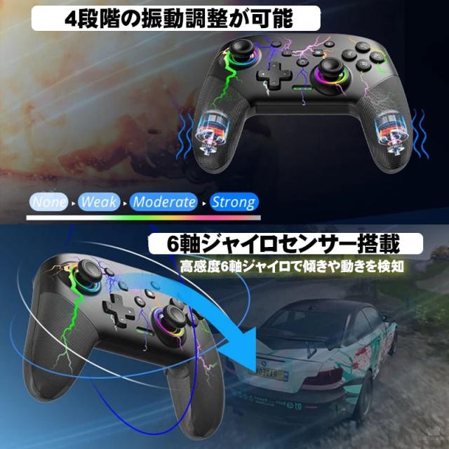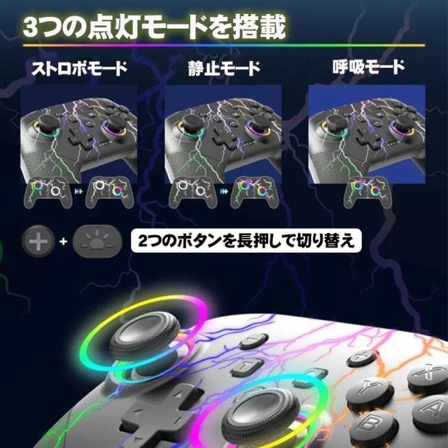ワイヤレスコントローラー Nintendo Switch SwitchLite 有機ELモデル対応 OLED プロコン 高性能 スマホ PC ジャイロセンサー 大容量バッテリー 900mAh ワンクリックペアリング 9カラーLED 連射機能 RGBライト