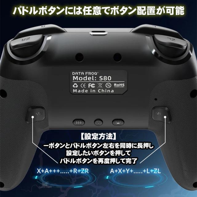 | 【様々なデバイスに対応】 Switch/iOS/android/PCに対応 様々な特徴を持つ高性能のワイヤレスコントローラーはより快適なプレイを実現可能。 【大容量のバッテリー】 900mAhのバッテリーを内蔵 約3時間のフル充電で約15時間の連続使用が可能。 【4段階の振動レベル】 2つの振動モーターが搭載されたコントローラーは より臨場感が溢れた体験を可能にします。 【6軸ジャイロセンサーを搭載】 コントローラーを上下左右に動かすことで、直感的な操作、微調整なども簡単にできる機能。 コントローラーの傾きや動きも検知する事も可能。 【マクロ機能搭載】 複数の連続する操作を登録し、ボタンを1回押すだけで再現が可能。 ゲーム中の同じ作業の繰り返しや必殺技などを登録しておくと便利です。 【手動連射と連射ホールド機能】 連射機能があればボタンは自動的に連打、 自分の指では出来ないような高速連射が実現。 【接続方法】 ・Switchとの接続 Switch本体で(コントローラー設定)持ち方/順番を替えるを選択 コントローラーのホームボタンを長押しで接続 ・iOS/Androidとの接続 iOSの場合 スマホ本体のBluetooth接続をONにする コントローラーのホームボタンとBボタンを長押しで接続 Androidの場合 スマホ本体のBluetooth接続をONにする コントローラーのホームボタンとAボタンを長押しで接続 ・PCとの接続 付属の配線とPCを有線接続で使用が可能 |