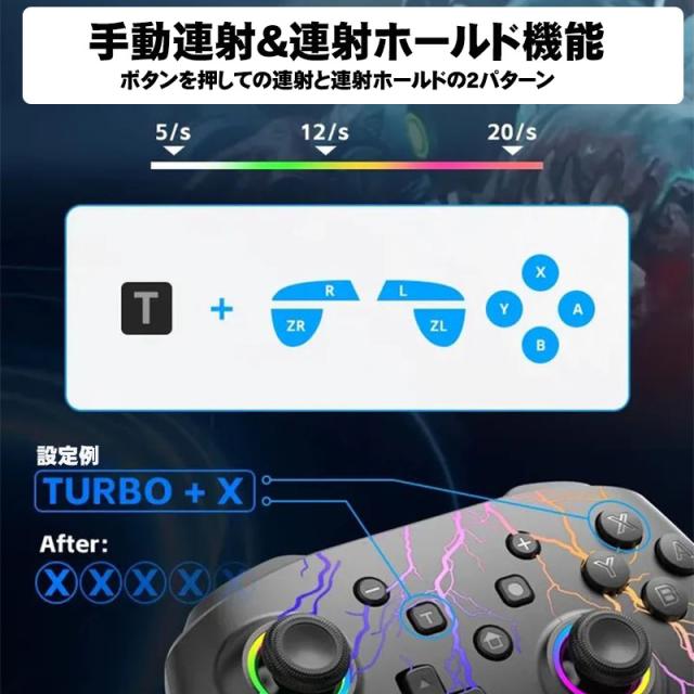 | ワイヤレスコントローラー Nintendo Switch SwitchLite 有機ELモデル対応 OLED プロコン 高性能 スマホ PC ジャイロセンサー 大容量バッテリー 900mAh ワンクリックペアリング 9カラーLED 連射機能 RGBライト |