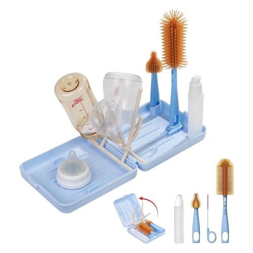 AiGouGou 哺乳瓶洗いセット 哺乳瓶ブラシ シリカゲル 洗剤ボトル 乾燥ラック お出かけ 旅行用
