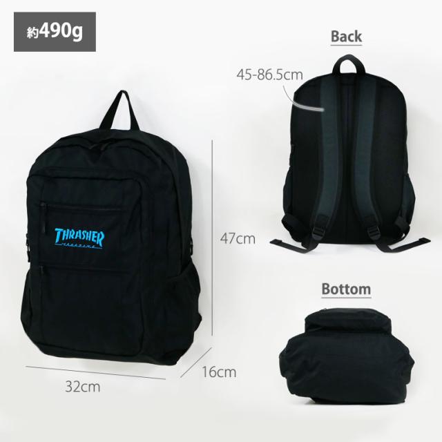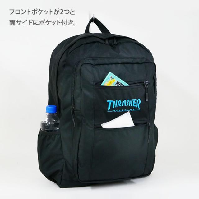 リュック THRASHER スラッシャー メンズ 学生 スクール 通学 2層 大容量 B4 30L バッグ デイパック バックパック 中学生 高校生 大学生 男女兼用 ユニセックス タウン 旅行 合宿 通勤 デイリー 行楽 1泊 2泊 ストリート カジュアル ブラック 黒 trr01