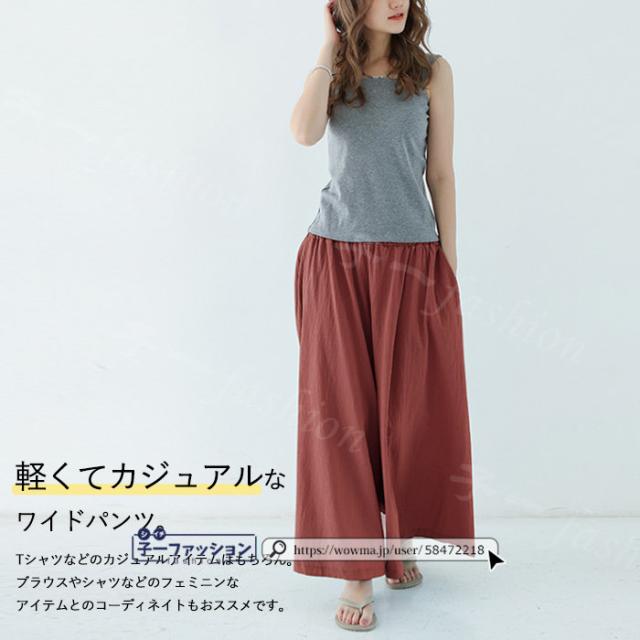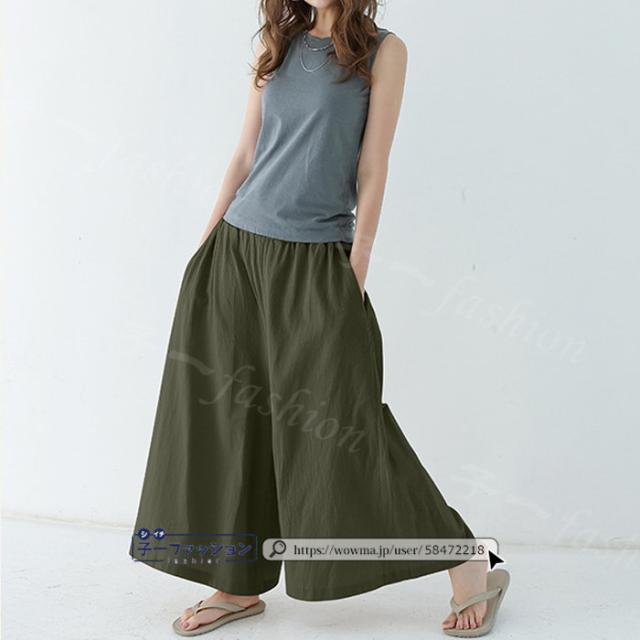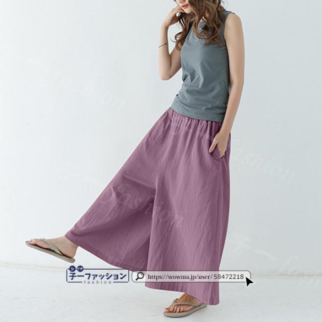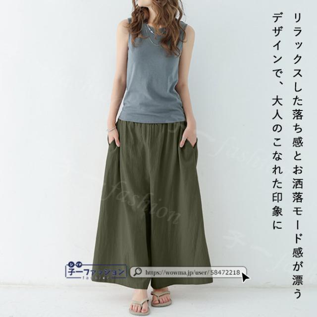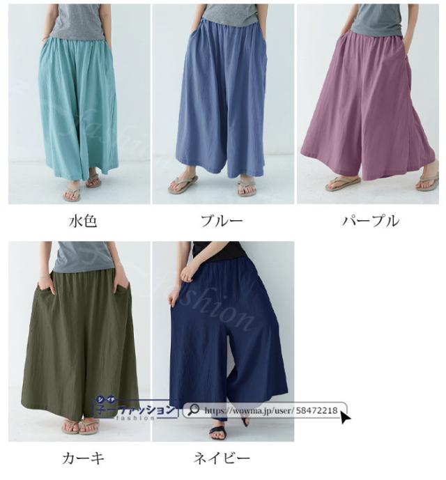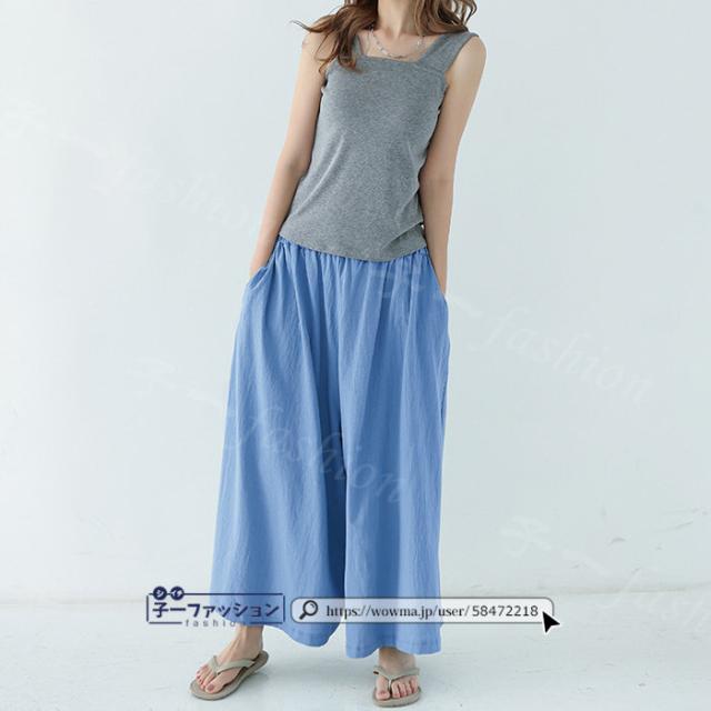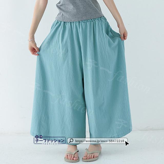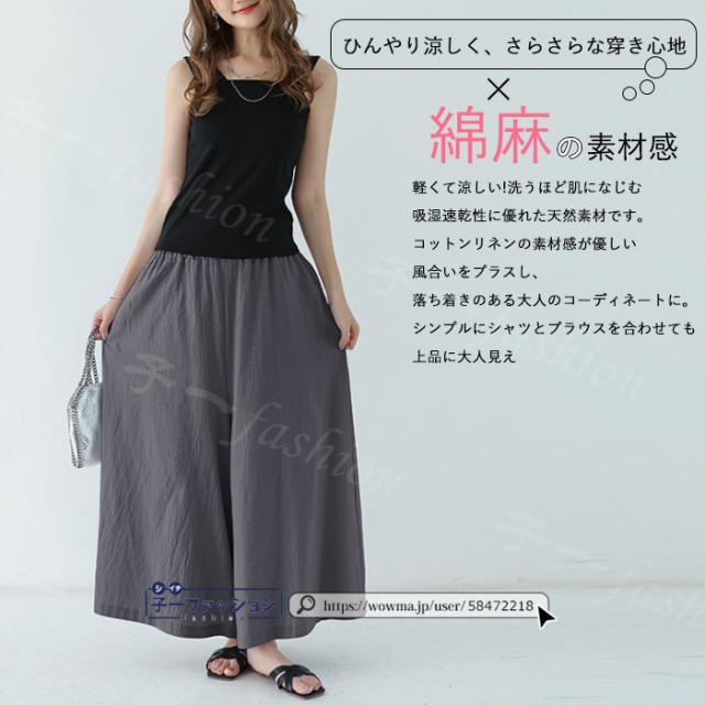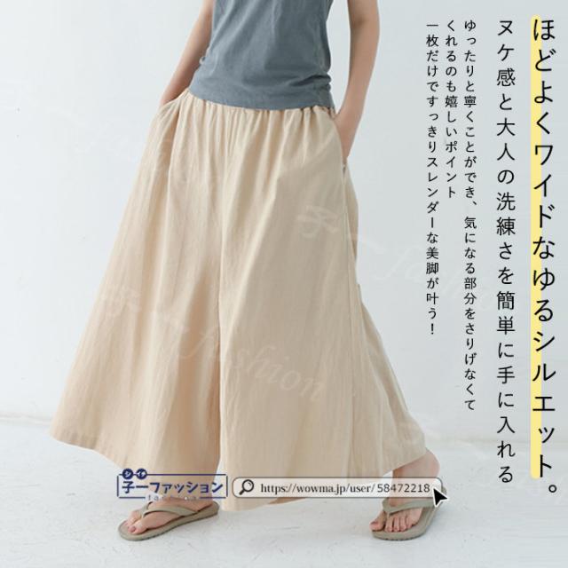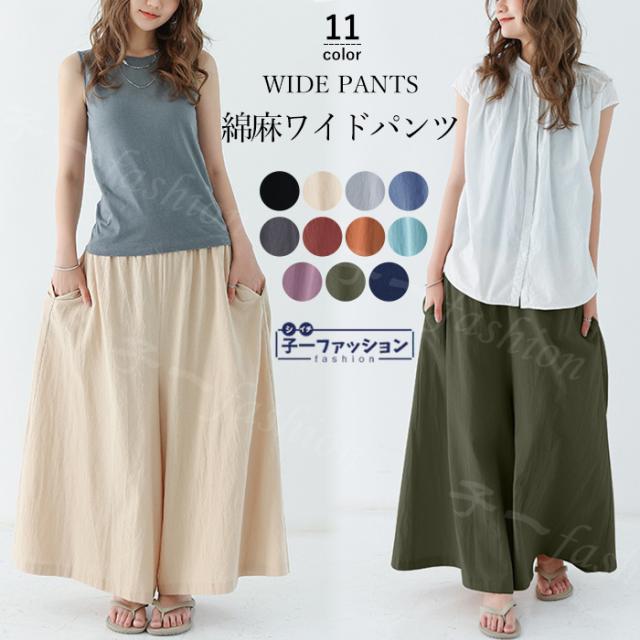 【二点目半額・クーポン利用で】ワイドパンツ 綿麻パンツ 冬新作 新作 レディース ガウチョパンツ ボトムス ウエストゴム パンツ 綿 コットン リネン 大人カジュアル 薄手 涼しい ポケット 涼感 低身長 高身長 ゆったり 大きいサイズ 春 夏 秋冬