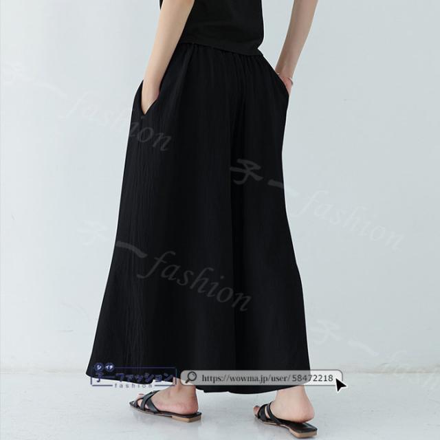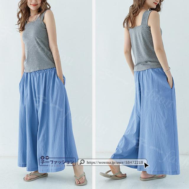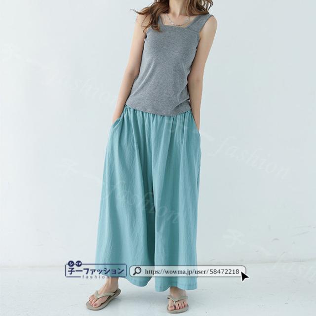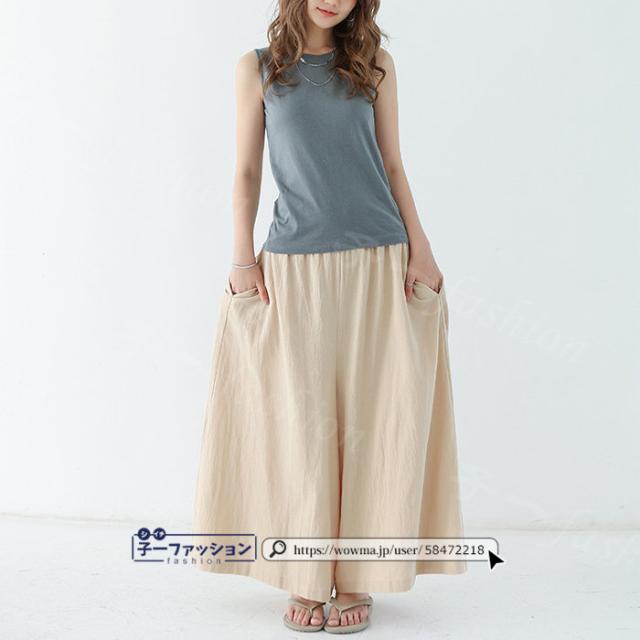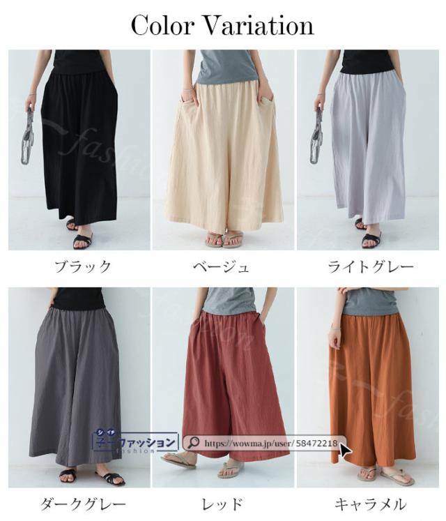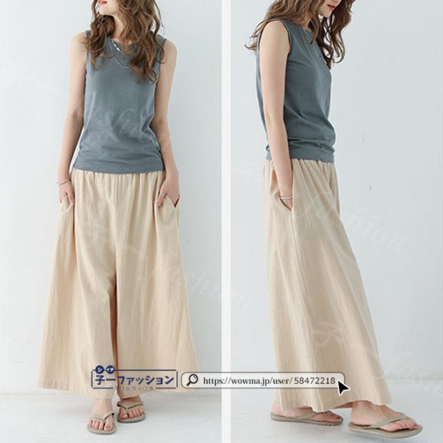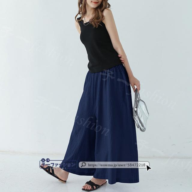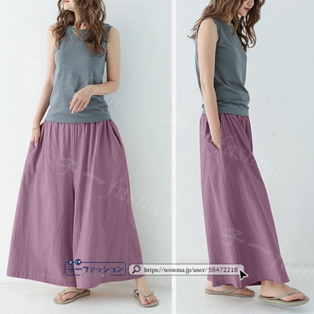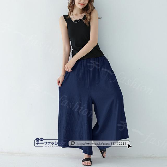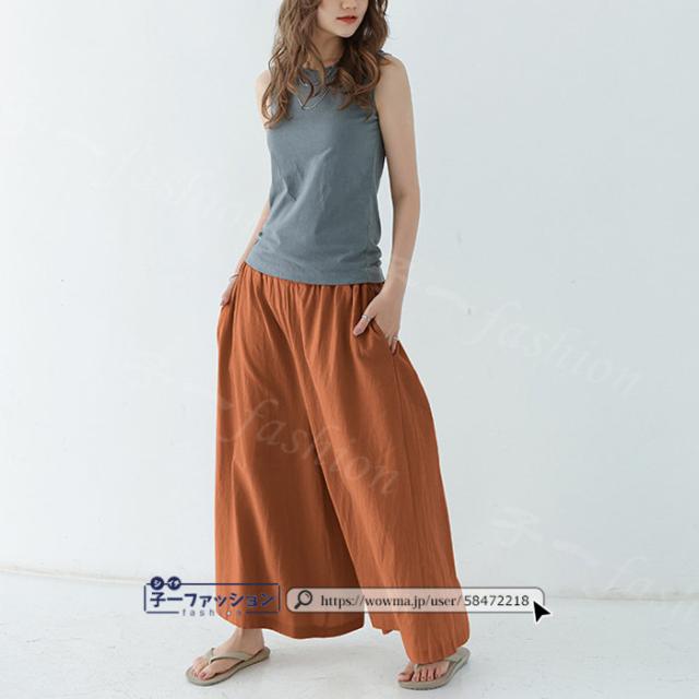 【二点目半額・クーポン利用で】ワイドパンツ 綿麻パンツ 冬新作 新作 レディース ガウチョパンツ ボトムス ウエストゴム パンツ 綿 コットン リネン 大人カジュアル 薄手 涼しい ポケット 涼感 低身長 高身長 ゆったり 大きいサイズ 春 夏 秋冬