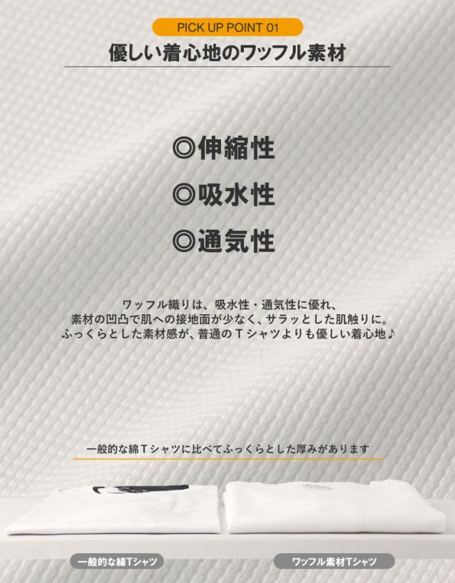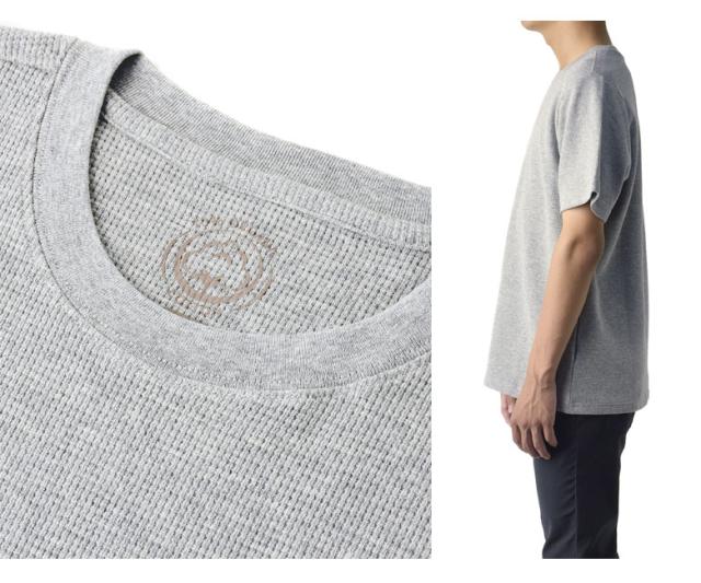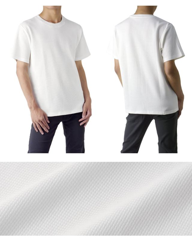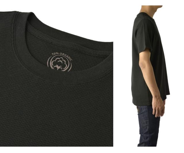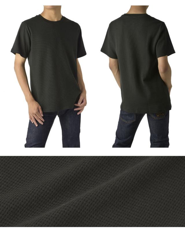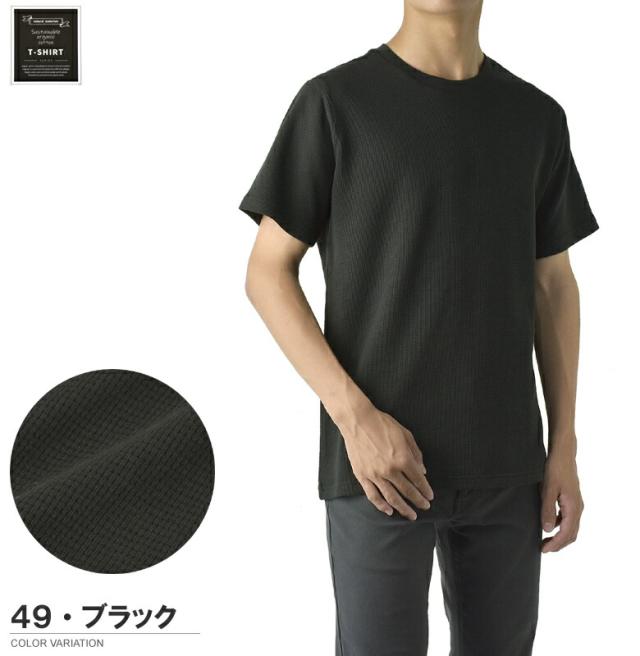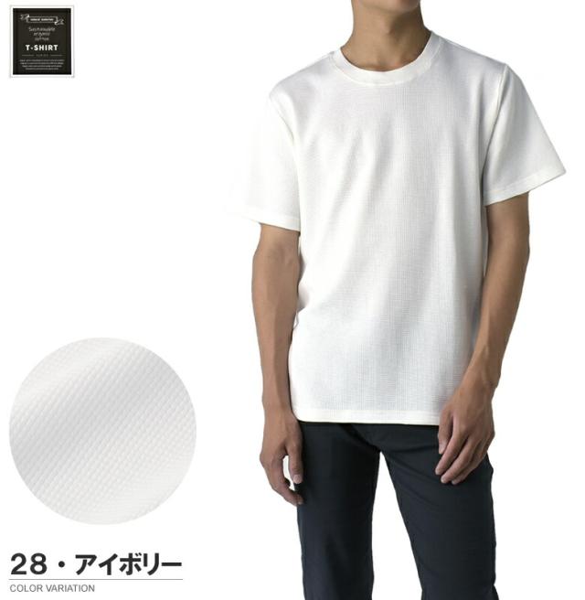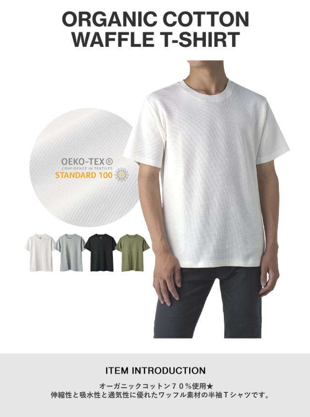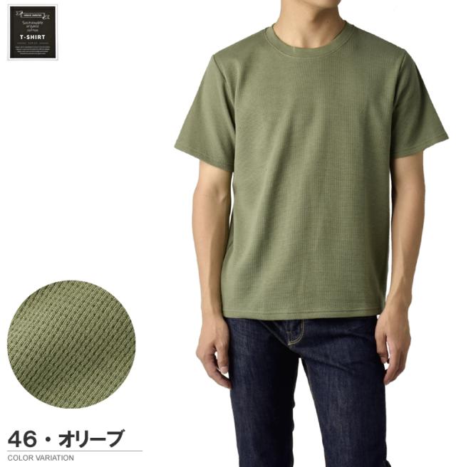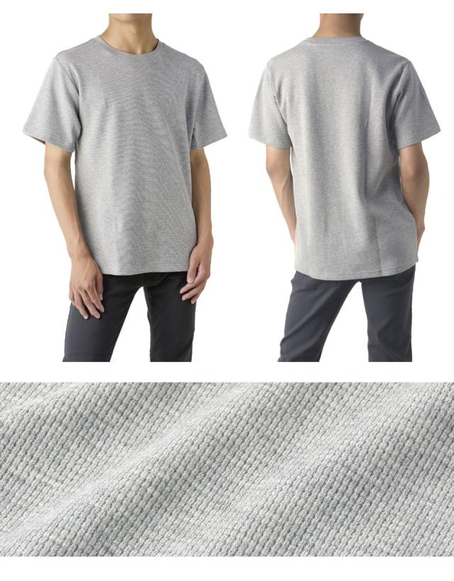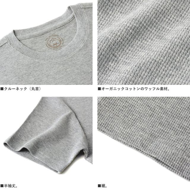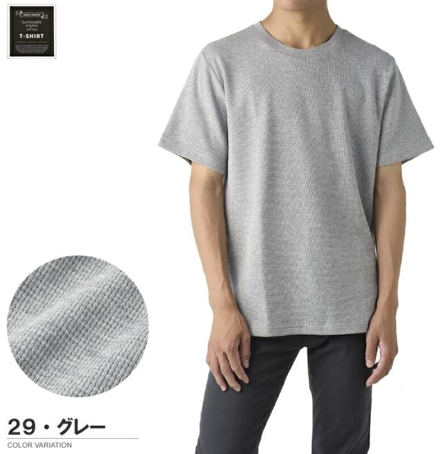 Tシャツ 半袖 メンズ クルーネック ワッフル 綿 綿100% サーマル オーガニックコットン使用 カットソー トップス 伸縮性 吸水性 通気性【E1I】【パケ1】