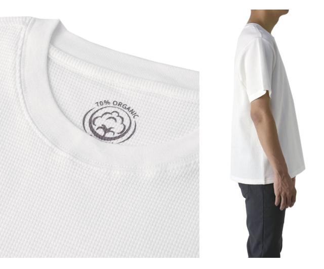 送料無料☆オーガニックコットン70%使用★伸縮性と吸水性と通気性に優れたワッフル素材の半袖Tシャツ。