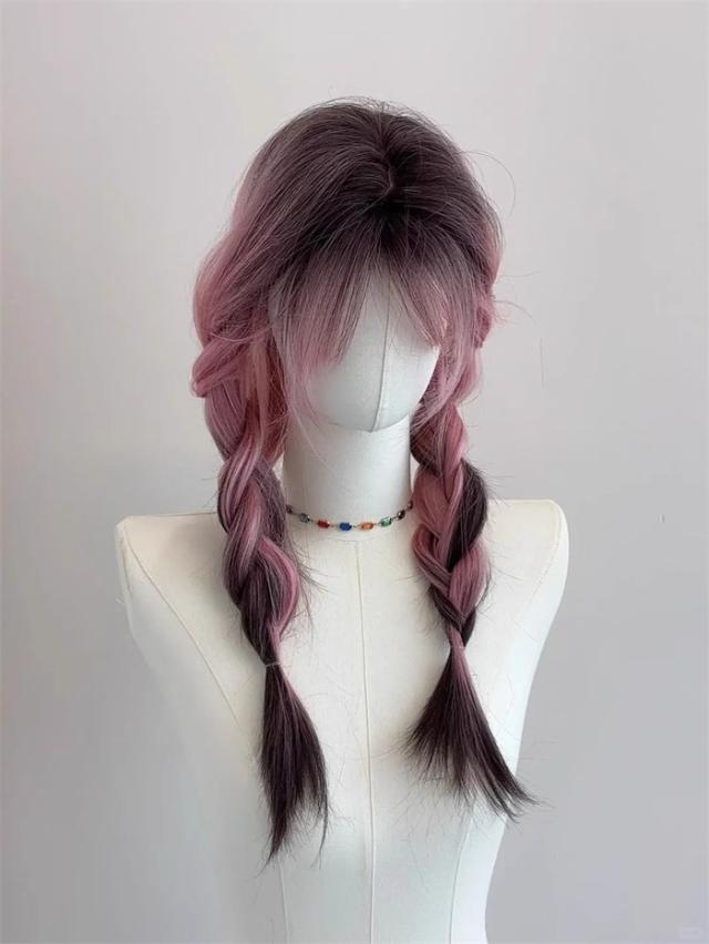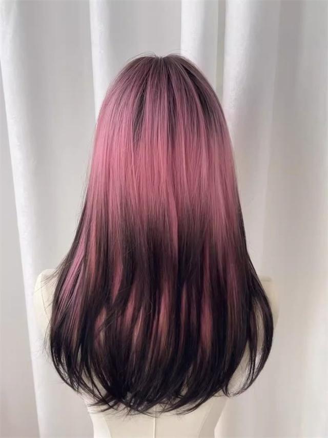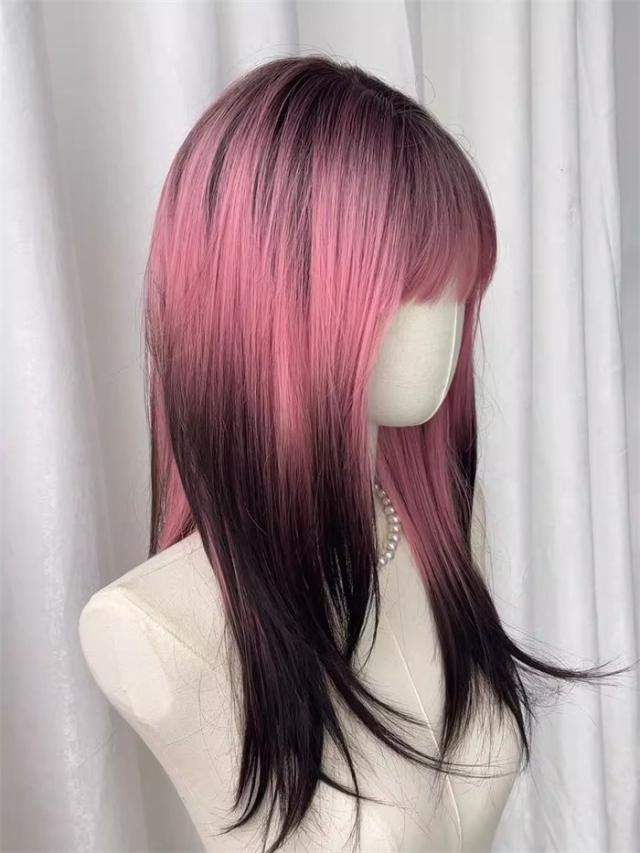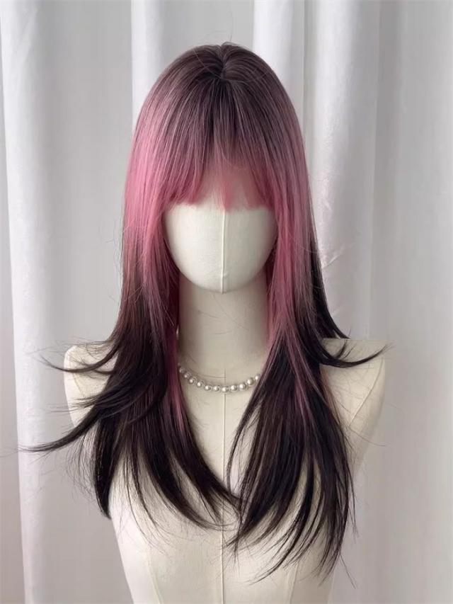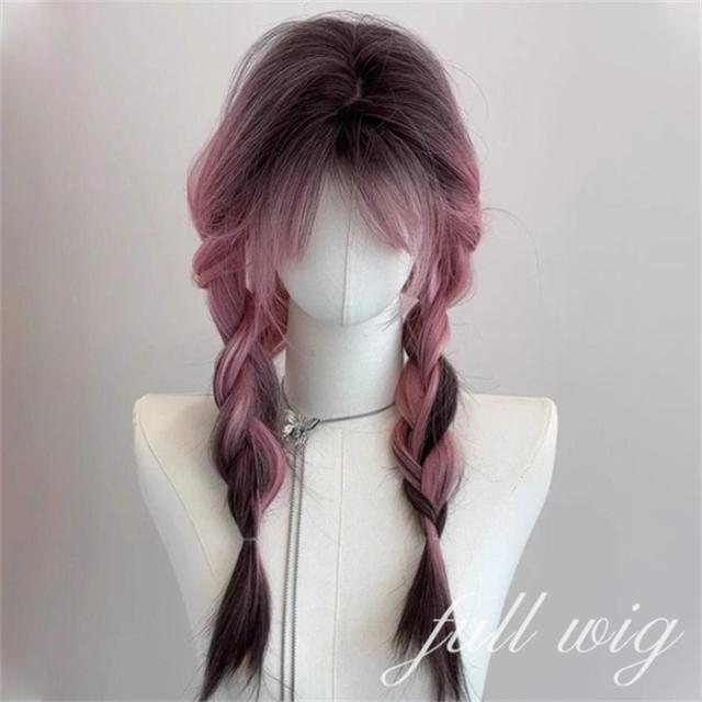 ウィッグ ピンク レディース フルウィッグ ロング ストレート グラデーション ぱっつん前髪 前髪あり かわいい 大人用 コスプレ ロリータ 原宿風 仮装 超自然 かつら wig Lolita 小顔 文化祭 イベント 学園祭 ハロウィン hl046d7zu