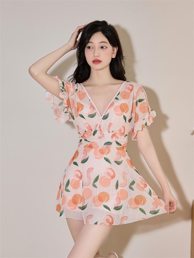 ワンピース水着 桃柄 ぽっちゃり 4L 5L 6L 水着 大きいサイズ 体型カバー 服みたいな 韓国風 露出控えめ 可愛い Vネック おしゃれ ショートパンツ ビーチ プール 夏 リゾート 海 温泉 オールインワン オトナ女子 温泉 セクシー 大人 ママ水着 20代 30代 40代