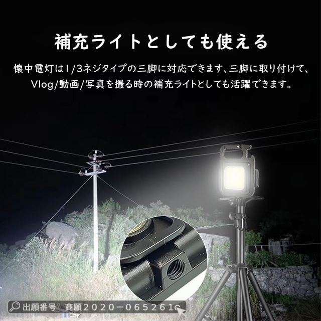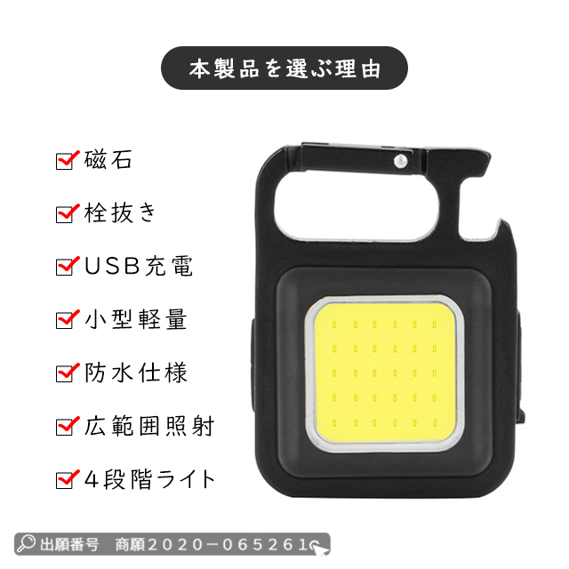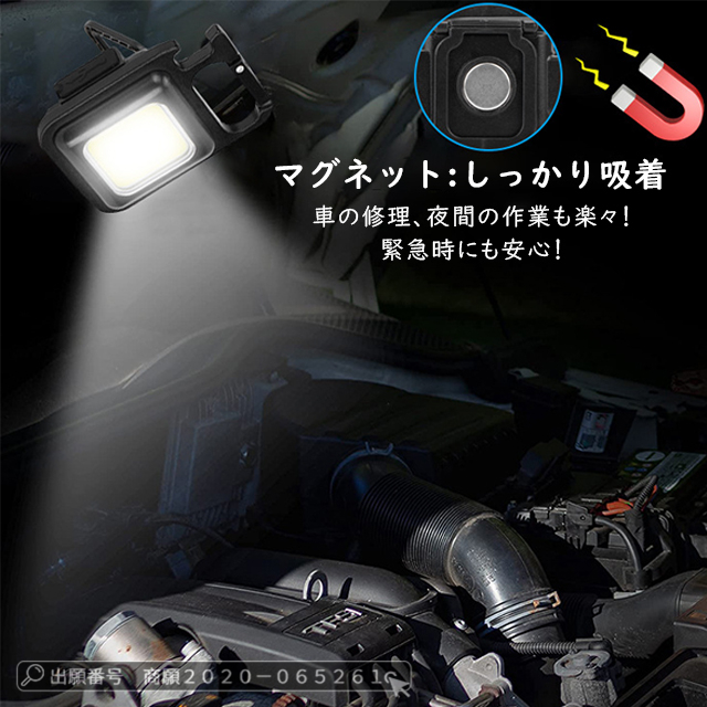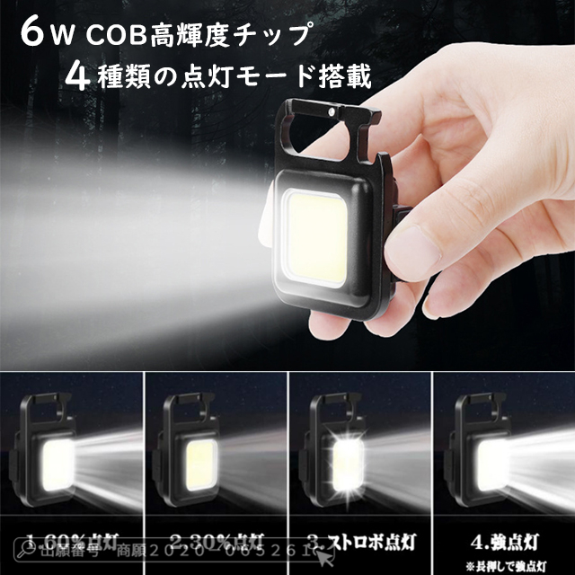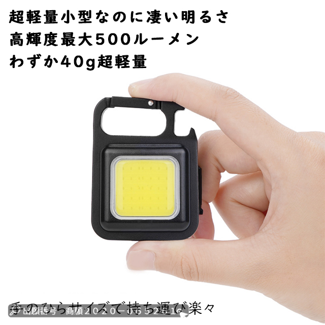 最安挑戦 冬新作 送料無料 新作 懐中電灯 小型 LED ライト キーホルダー ライト 充電式 小型 頑丈 吸着力強い スタンド式 4種類輝度調整可 三脚装着可 栓抜き機能 ミニ 高輝度 COBライト 投光器 防災グッズ アウトドア 停電 地震災