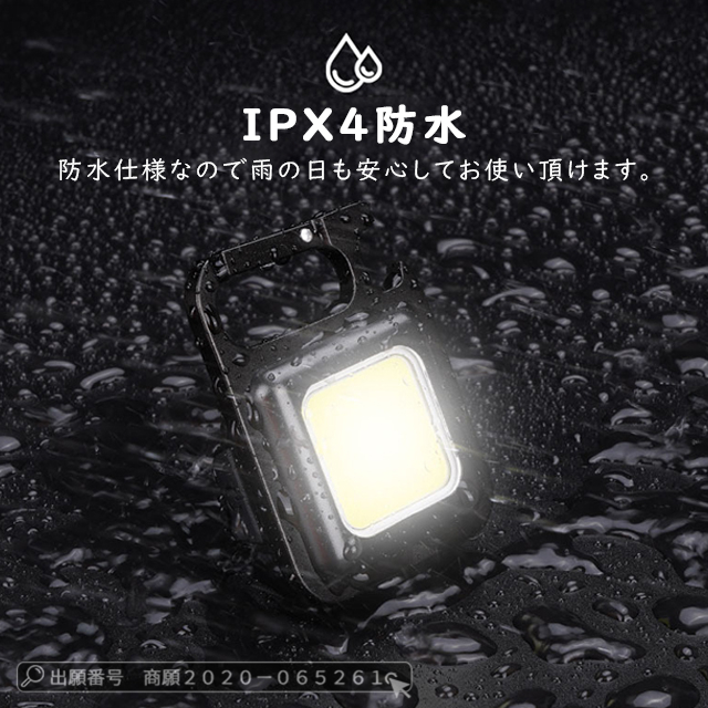 | 【小型軽量 & キーホルダー式】 | ◆本体のサイズは6cm×4.5cm×2cm、重量:約45gだけで、かなり小型のキーホルダー式ライトです。◆更に持ち運びに便利なハンガーリングけを採用で、外出時にかばんや鍵等にかけて、吊り下げ場所が大幅に拡大します。 |